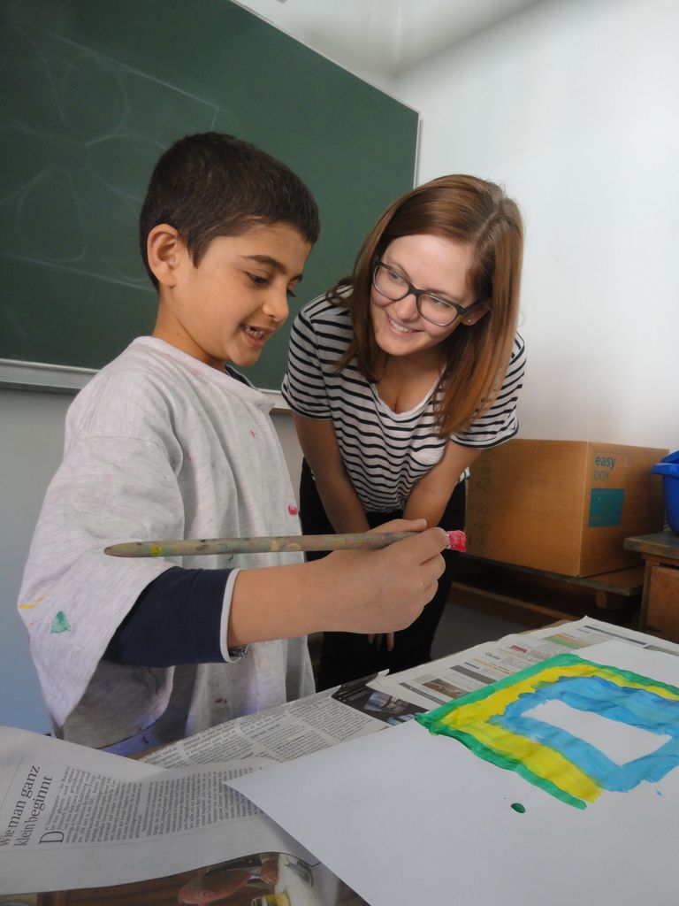 Am Vormittag bin ich in den Klassen und unterstütze dort die Lehrerinnen so gut es geht. Dann machen Ani und ich die Mittagsbetreuung. Und in der Nachmittagsbetreuung helfe ich den Kindern bei ihren Aufgaben.