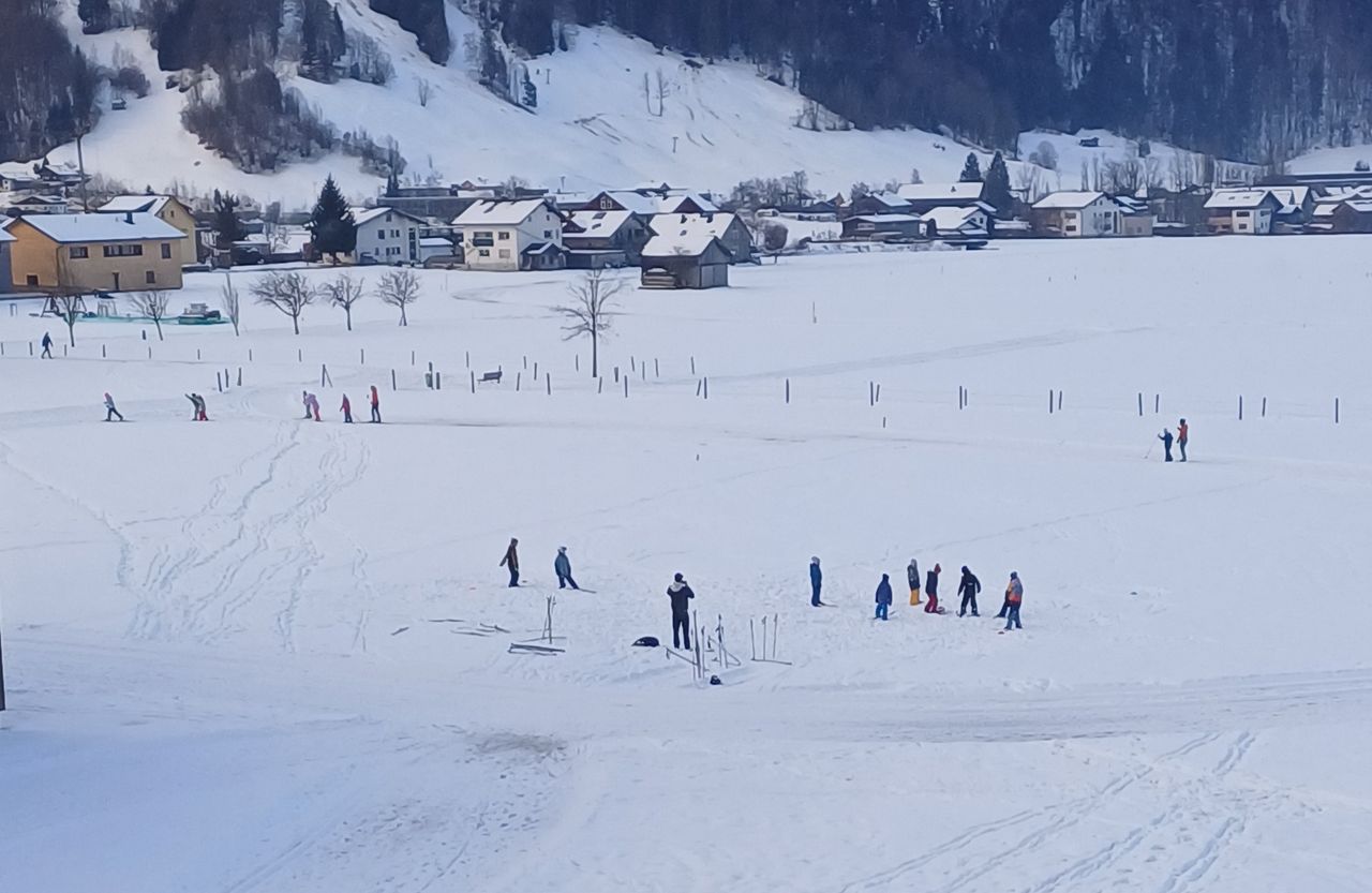 Alle Klassen schnappten sich die Langlaufausrüstungen und drehten Runden auf der Loipe.
